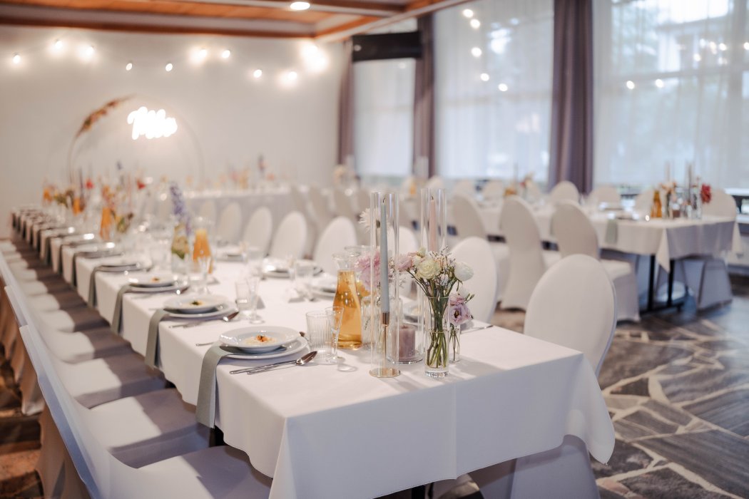 Sala Restauracyjna o pow. 250 m2 położona w budynku głównym Hotelu Trzy Jeziora. Możemy w niej ugościć do 200 osób.
